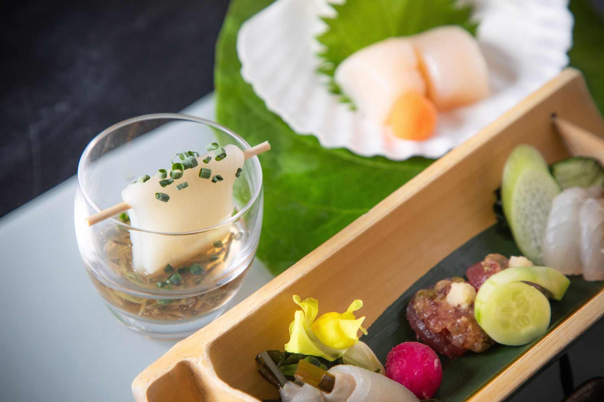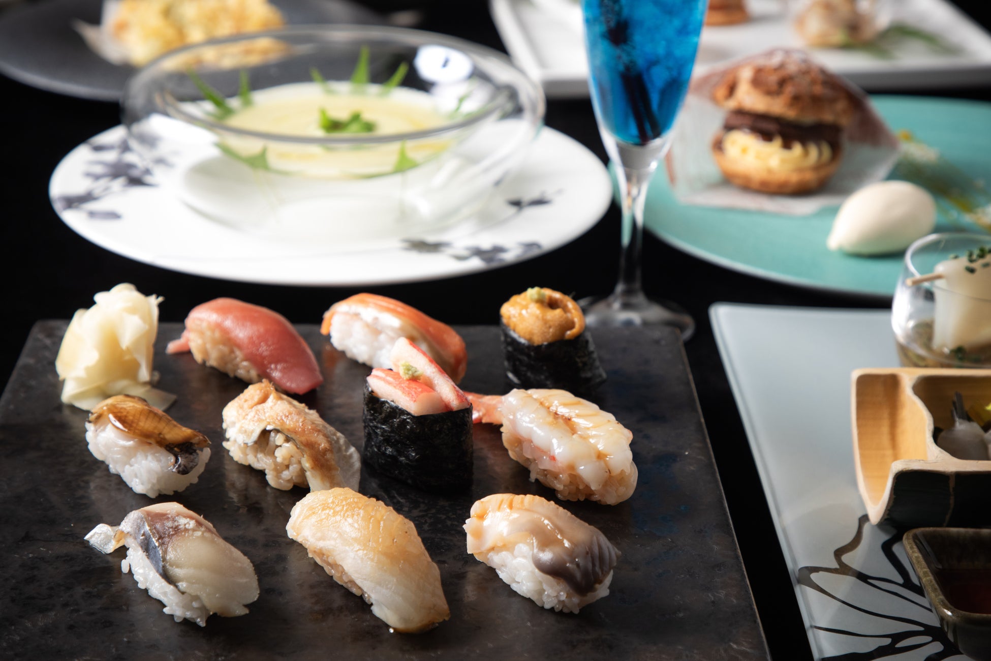 「Blue Seasons」は Blueの照明、ジャズが流れるシックな雰囲気が印象的な、ニューヨークにある寿司バーをイメージした空間で、NYスタイルの創作寿司&魚介料理をお楽しみいただけます。