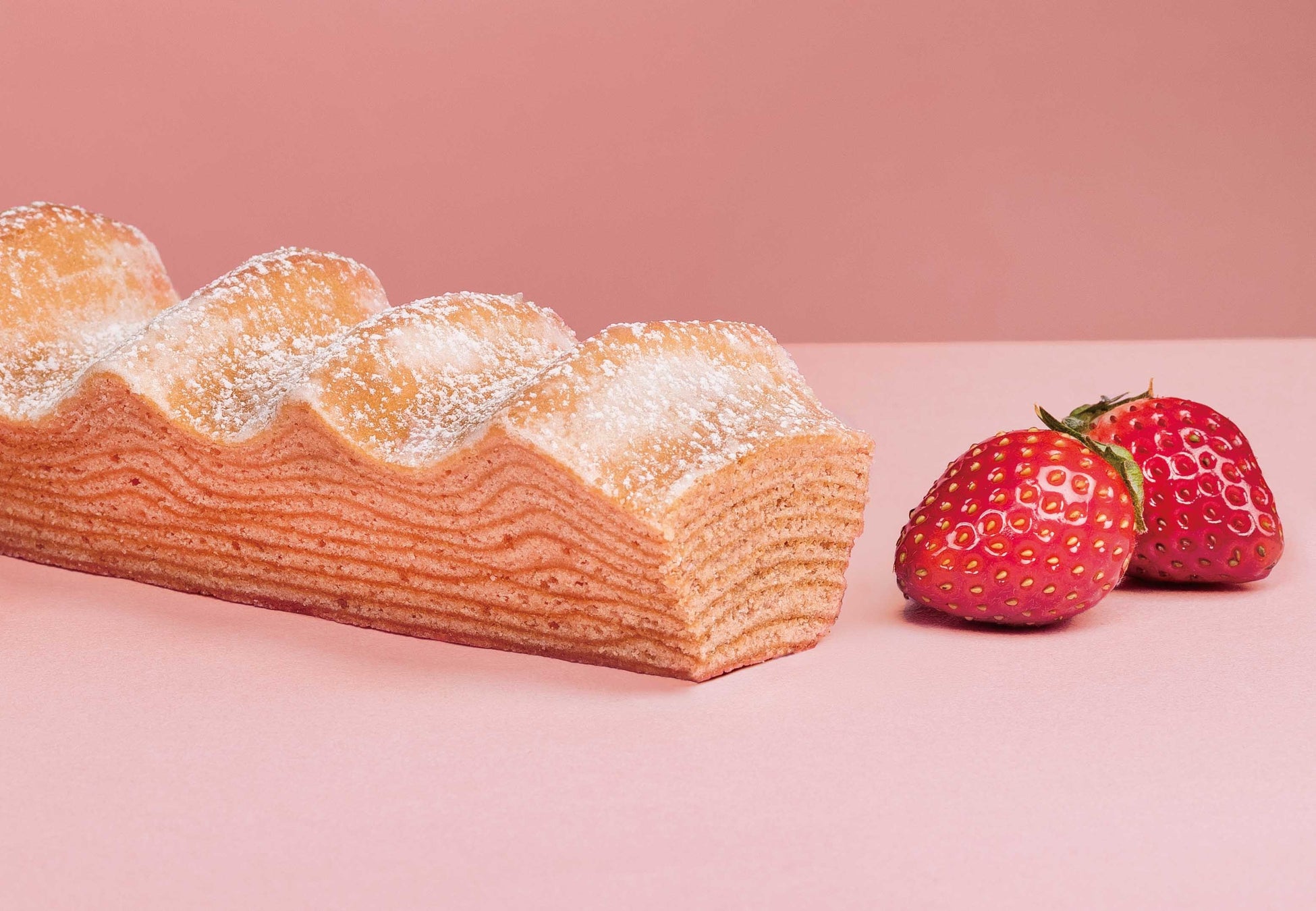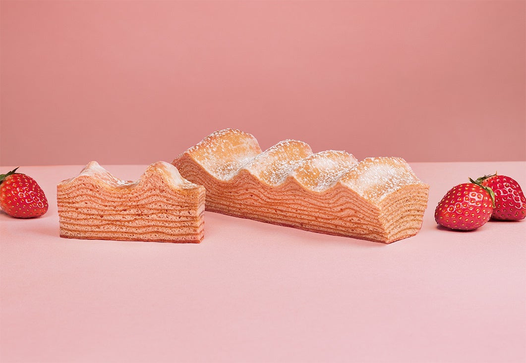 “とちおとめ”使用の苺ペーストを生地に練り込み、一層一層丁寧に焼きあげた、苺の香り華やかな春色の新作です。苺の味わいを引き立てるため、バターとの絶妙なバランスを追求し、まるで“苺バター”をイメージするふくよかな甘味に仕上げました。またホワイトショコラをブレンドすることで、まろやかでコク深い味わいに。皮はカリッと香ばしく、中はしっとり熟成。ひとくちほおばると甘酸っぱい苺と芳醇バターの香りが広がる、春限定の味をお楽しみください。
