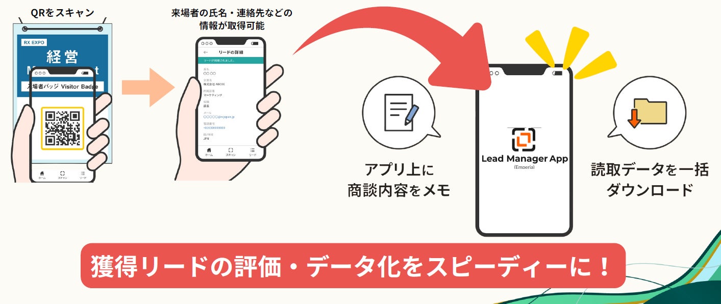 本展では来場者バッジ読み取りを行えるスマートフォンアプリを導入しております。