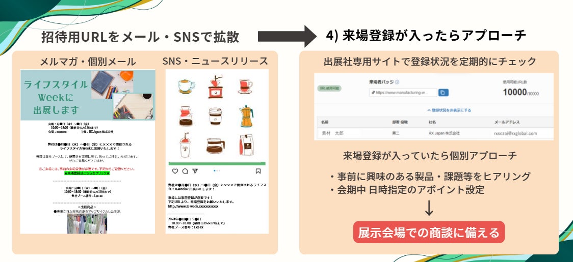 そんな課題がありましたが、各ご出展社専用の「招待用URL」を使うことで、