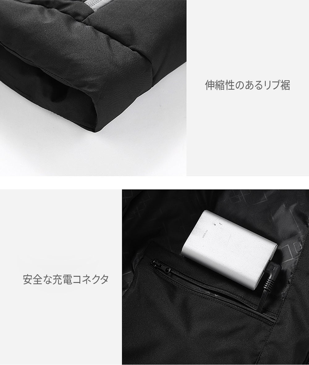 前作同様に、素材には分厚いポリエステルとグラフェン素材を使用しているので、防風・防寒性能が高く、電源を入れなくても十分に暖かいです。