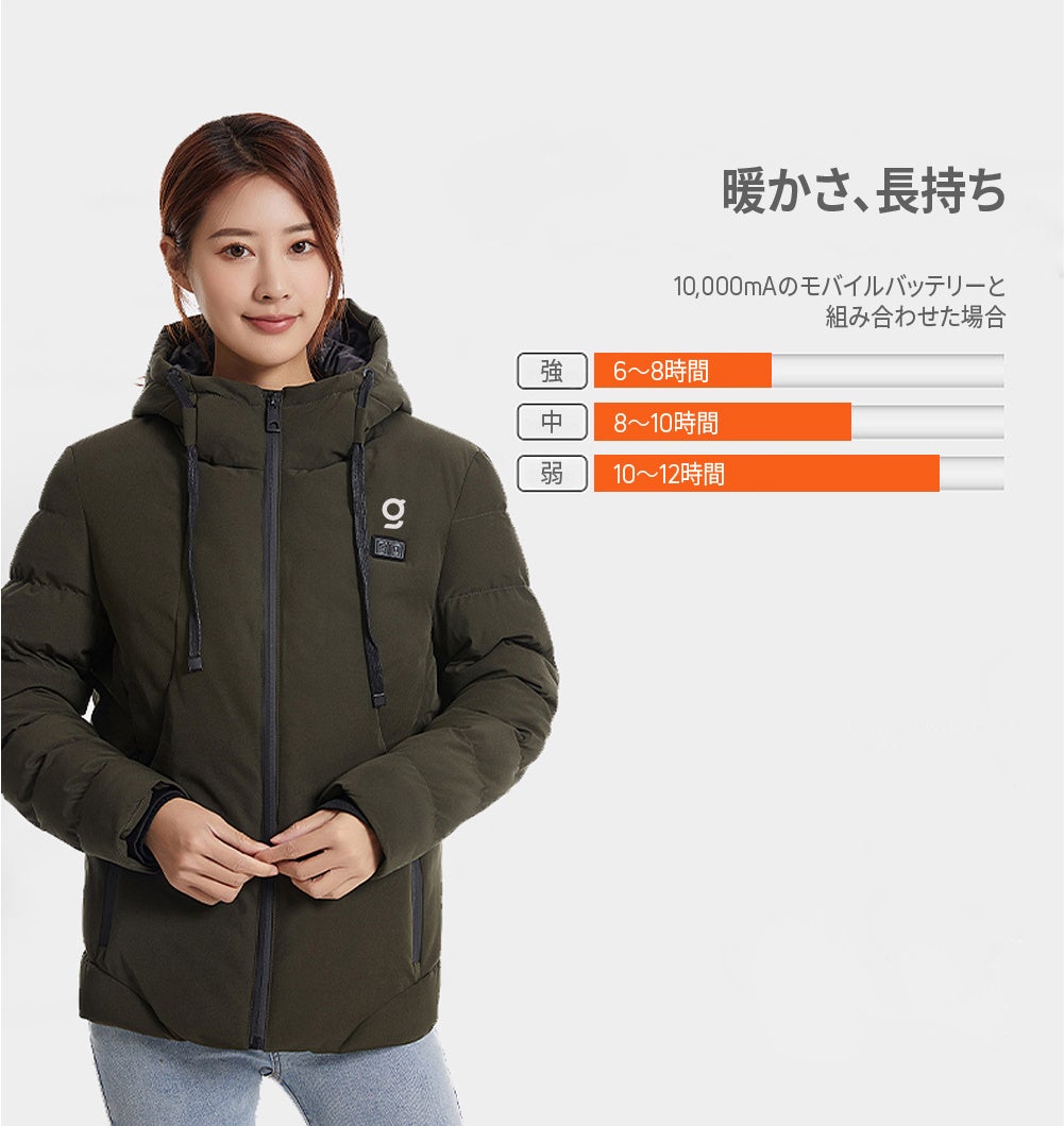 撥水・防風性能に優れ、さらに上半身11箇所をヒーターで優しく温めてくれます。寒い季節を快適に過ごすための1着。心強い味方です!