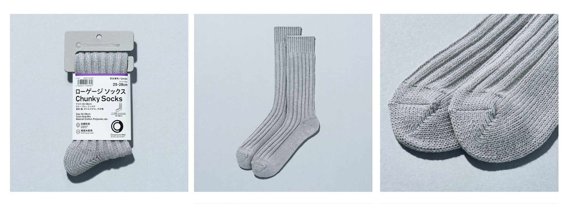 コンビニエンスウェアの定番アイテムであるソックスやタオルハンカチの新色のほか、昨年よりご好評をいただいているスウェットシリーズにカラーアイテムが加わり、冬のコーディネートをより一層カラフルに彩ります。