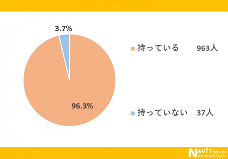 スマートフォンを持っているかどうかについては、「持っている」が96.3%、「持っていない」が3.7%という結果になりました。