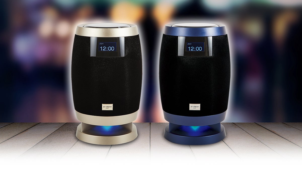 その世界を楽しめるよう開発されたCDプレーヤー「ジェットストリームオーディオ」には、初代パーソナリティー・城達也氏のナレーション12篇と一流アーティストによる珠玉の名曲100曲を本体にあらかじめ内蔵。360度スピーカーを内部に設置し、小型サイズでありながら部屋いっぱいに響く音に包まれる"本格派オーディオ"で、放送当時の雰囲気を味わうことができます。