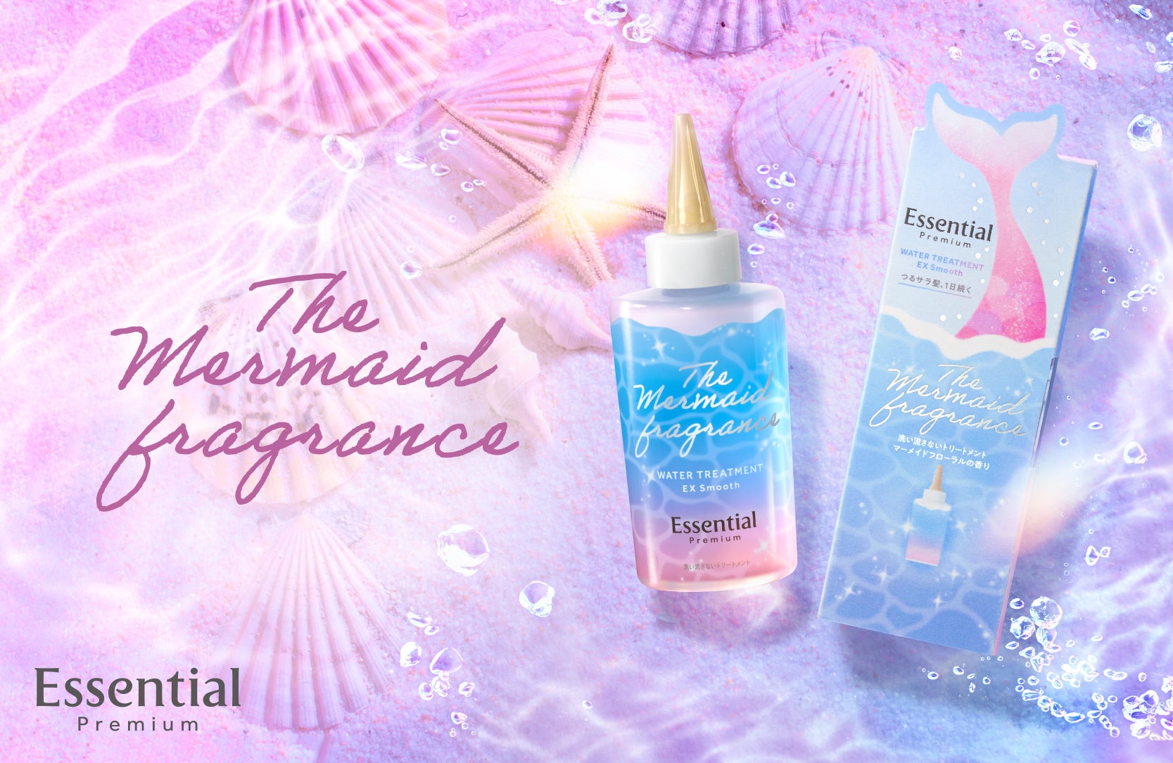 海やフェスなどのイベントが多く、髪のダメージも気になる夏。「Essential」は、“海帰りでもつるサラ髪”を叶えるウォータートリートメントを通じて、パッケージに出会った瞬間から髪に触れた瞬間まで、なりたい自分になれる“ときめくヘアケア体験”を提供してまいります。