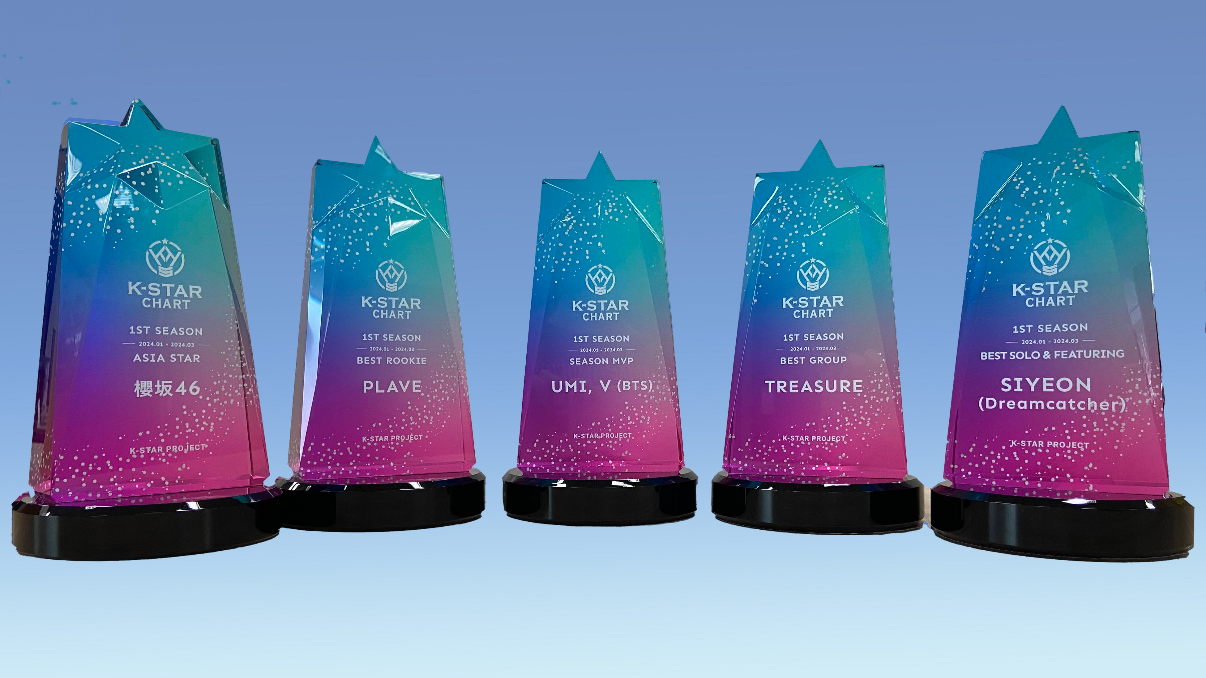 また各部門1位のアーティストには、オリジナルデザインのスペシャルトロフィーを贈呈、さらにラジオ番組「K-STAR CHART presents POP-K TOP10 Friday」での特集や各メディアでの発表を予定しております。