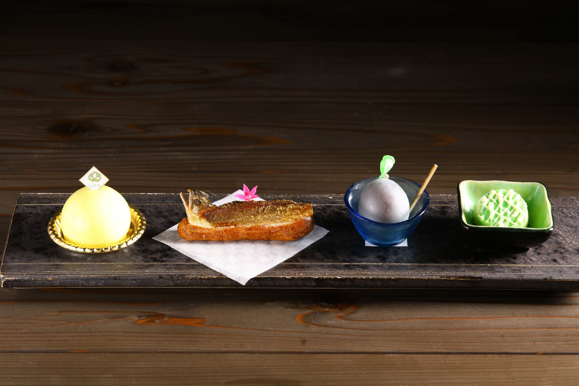 自家製エクレア生地に塩カスタードと二種類のクリーム・鮎を組み合わせた「鮎のエクレア」。