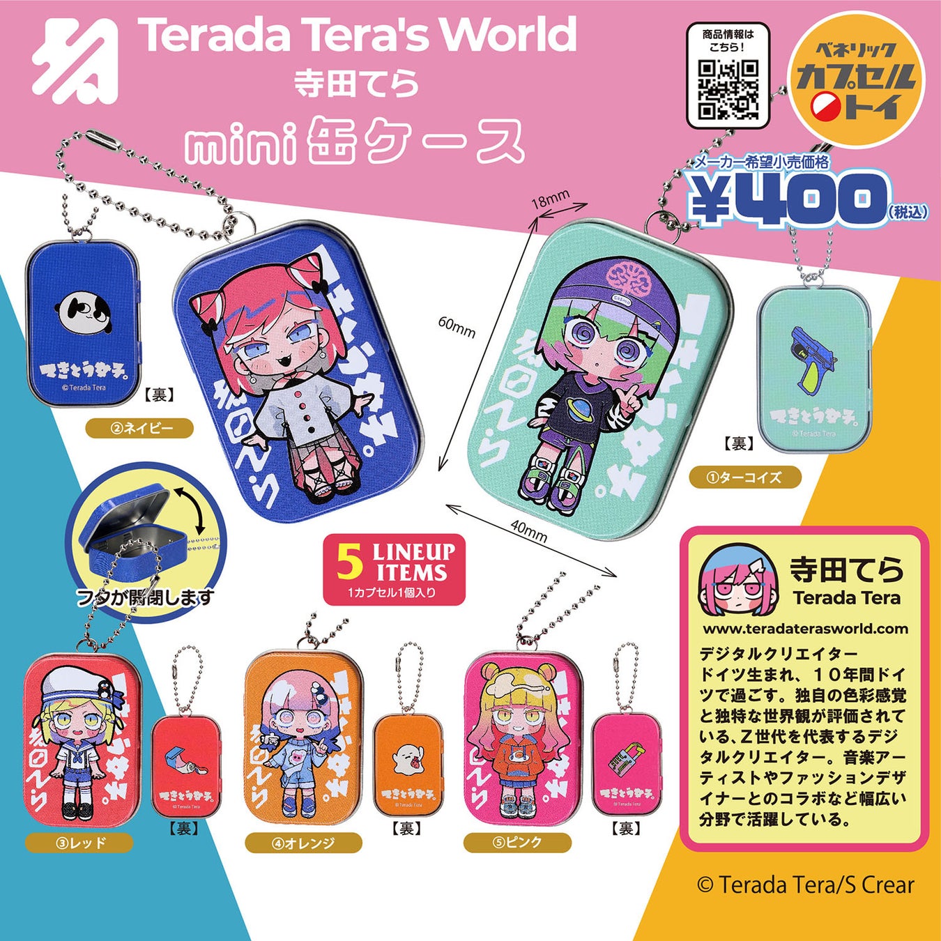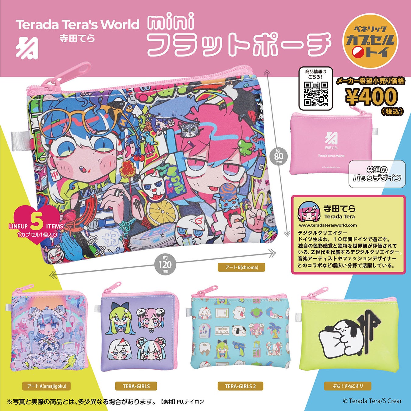 Z世代にも人気のアーティスト、寺田てらの世界をぎゅっと詰め込んだミニフラットポーチとミニ缶ケースを全国のカプセルトイ自販機でお楽しみください。