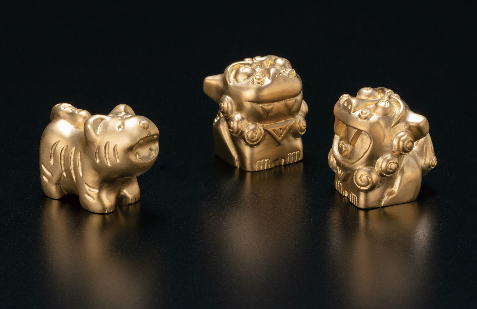 右:18金製シーサー (計31.5g /各高さ20×幅18×奥行18mm) 税込836,000円