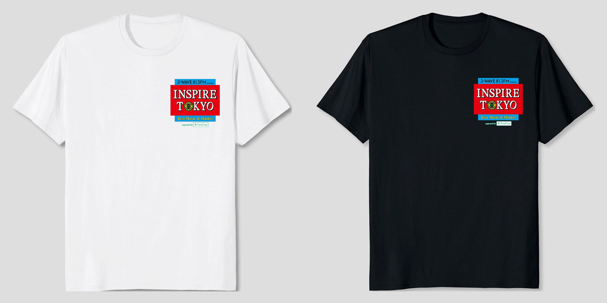 「J-WAVE INSPIRE TOKYO 2024」出演者全員のロゴを背面にあしらったオフィシャルTシャツ。前面の田名網敬一デザインのロゴも今回だけのオリジナルデザイン。
