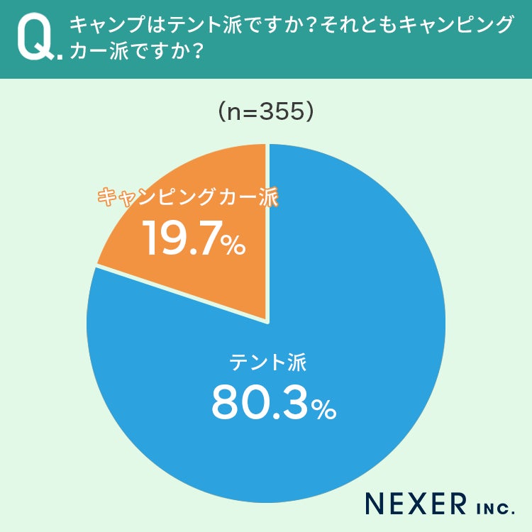 80.3%の方が「テント派」で、19.7%の方が「キャンピングカー派」と回答しています。