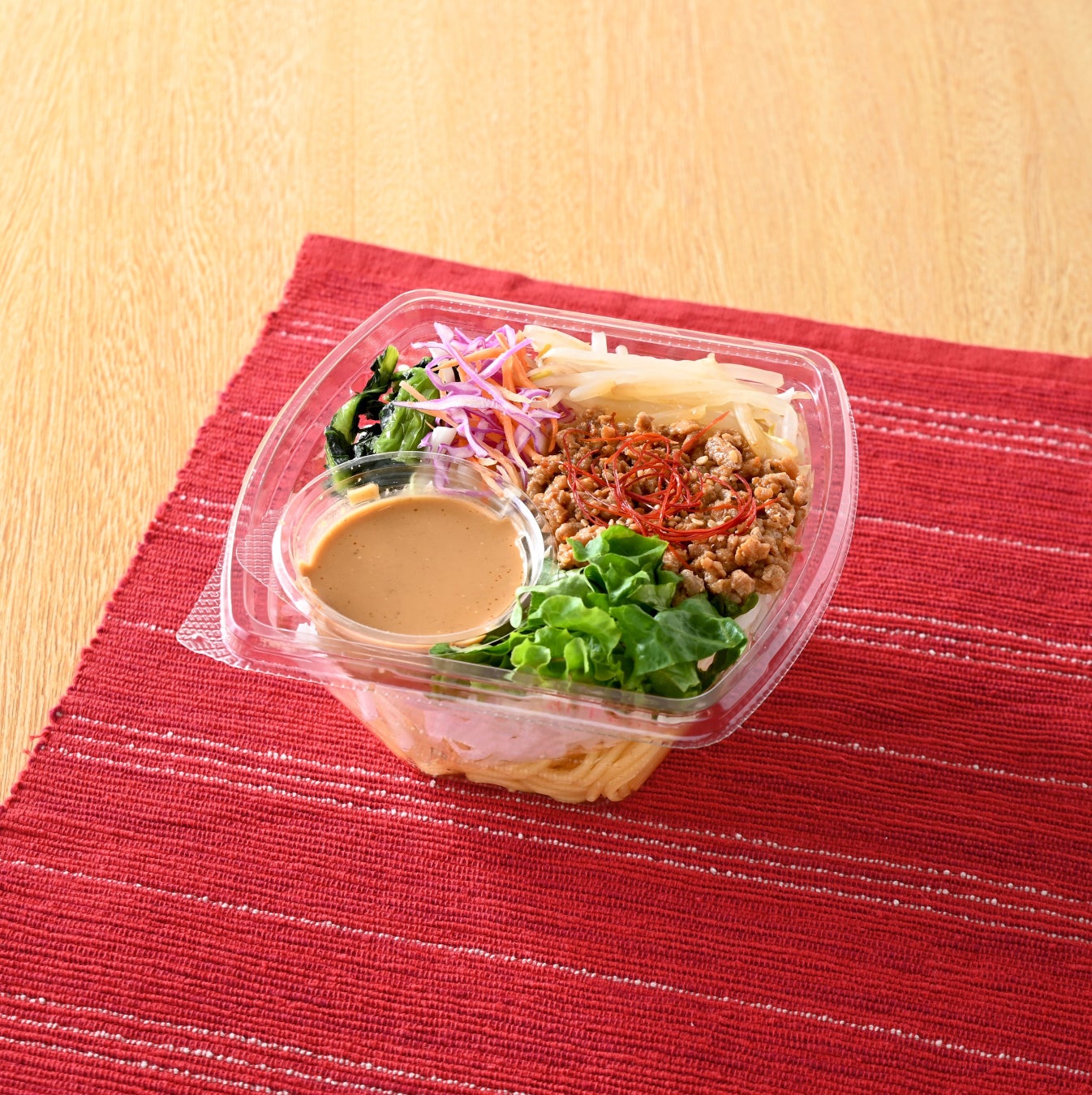 【内容】コシのある中華麺と大根や小松菜などの7種野菜、豆板醤や花椒などで炒めた肉そぼろを入れたボリューム感ある汁なし担担麺風サラダです。