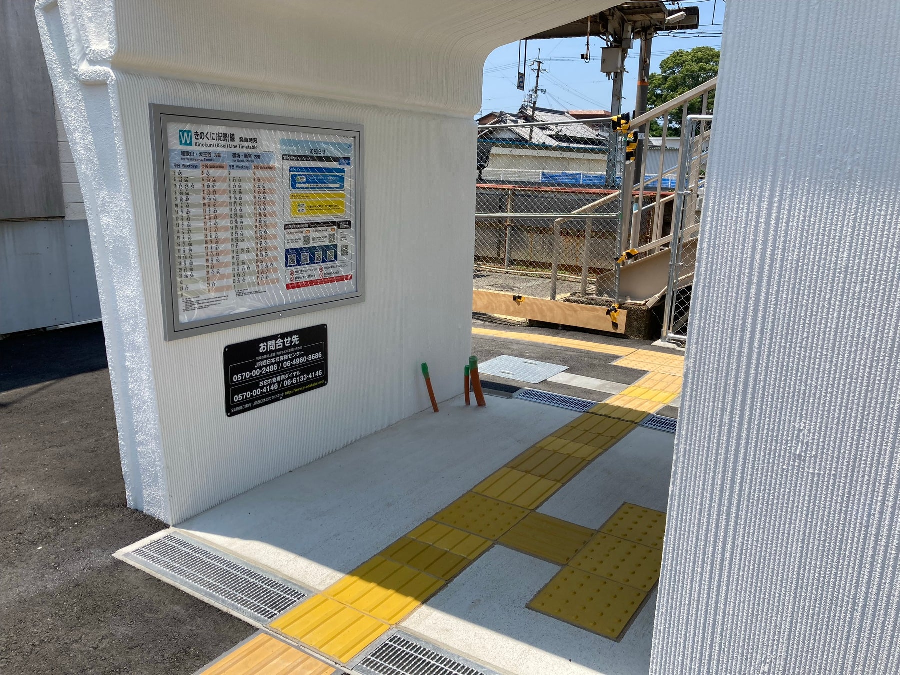 世界初※の建設用3Dプリンターを活用して建設された駅舎になります。壁面には「みかん」と「たちうお」をモチーフにした装飾が施されています。1