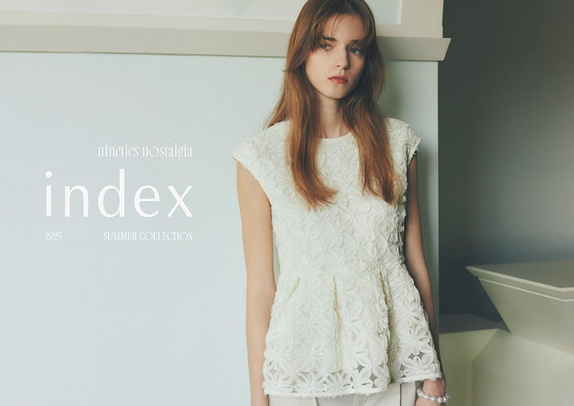 「index(インデックス)」は、全国の駅ビルやショッピングセンターを中心に、お仕事からデートなどのお出かけまで着ていただける着回し力の高い大人フェミニンなアイテムを多数ご提案しております。