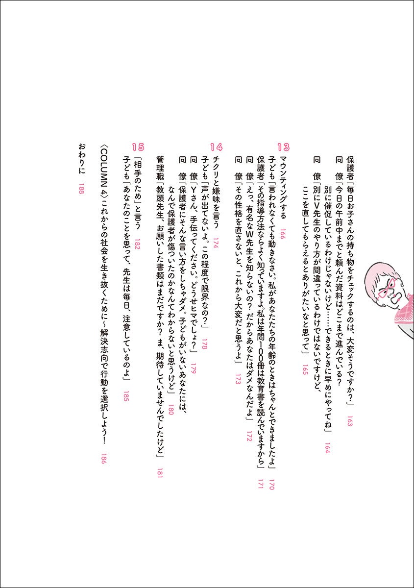 本書では、学校の先生方が実際に直面している「怒りがわく場面」の事例集ごとに、
