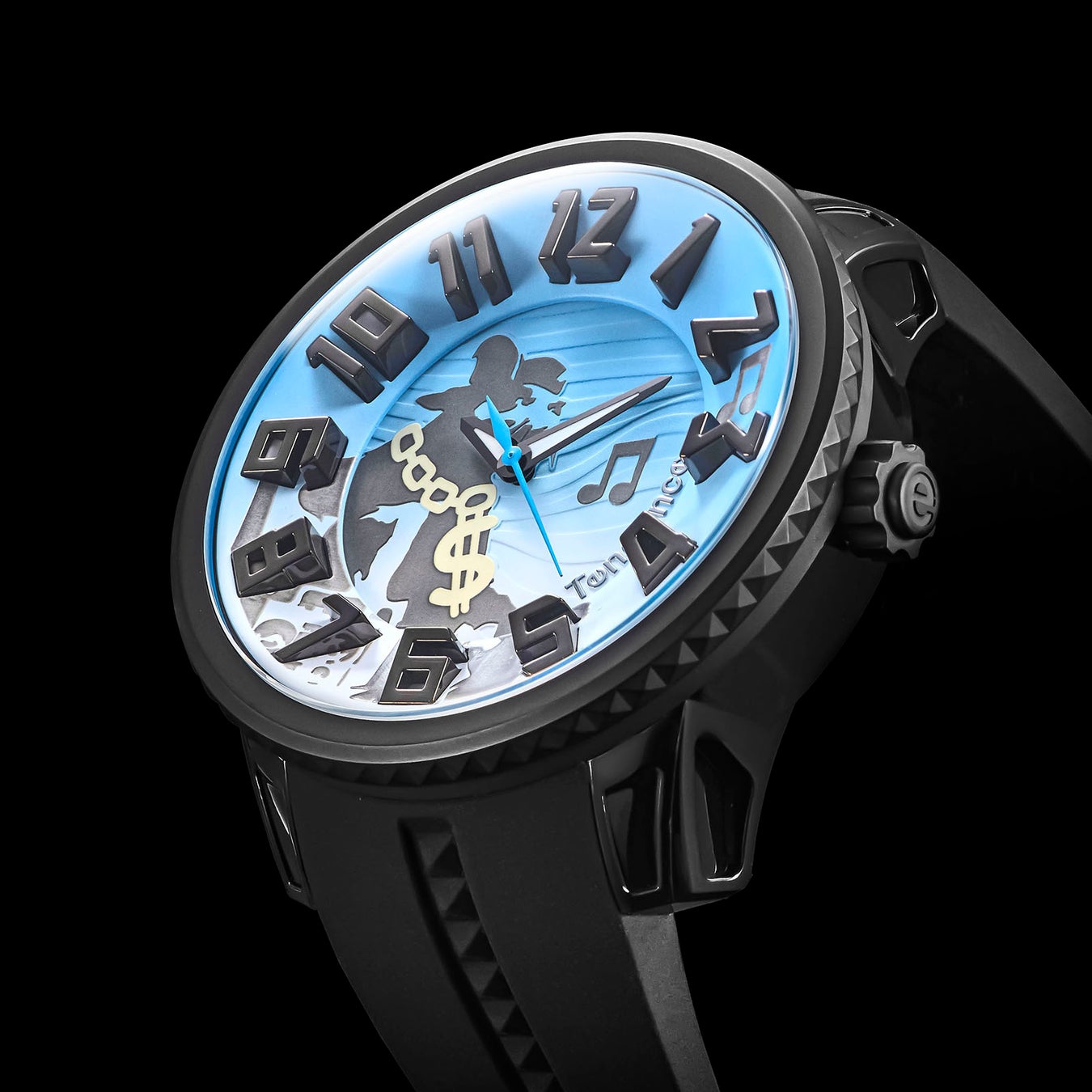 今回のコラボレーションでは、Tendenceのアイコニックなタイムピースとバンクシーのグラフィティアートを融合。さらには、Tendenceとして初めてUVプリント技術を用いています。