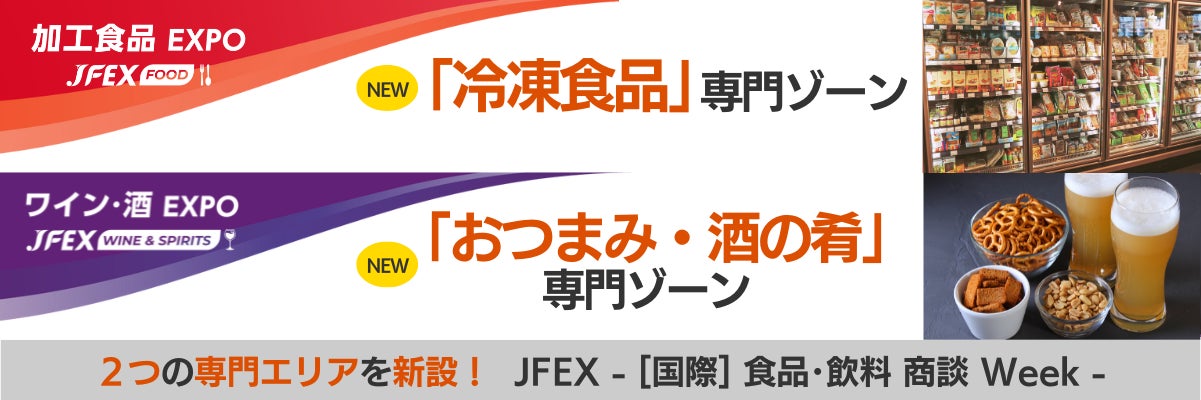 RX Japan株式会社は、世界中の食品と飲料が集まる商談展示会「JFEX(ジェイフェックス)」内にて、【冷凍食品】と【おつまみ】の専門ゾーンを新設することを決定しました。