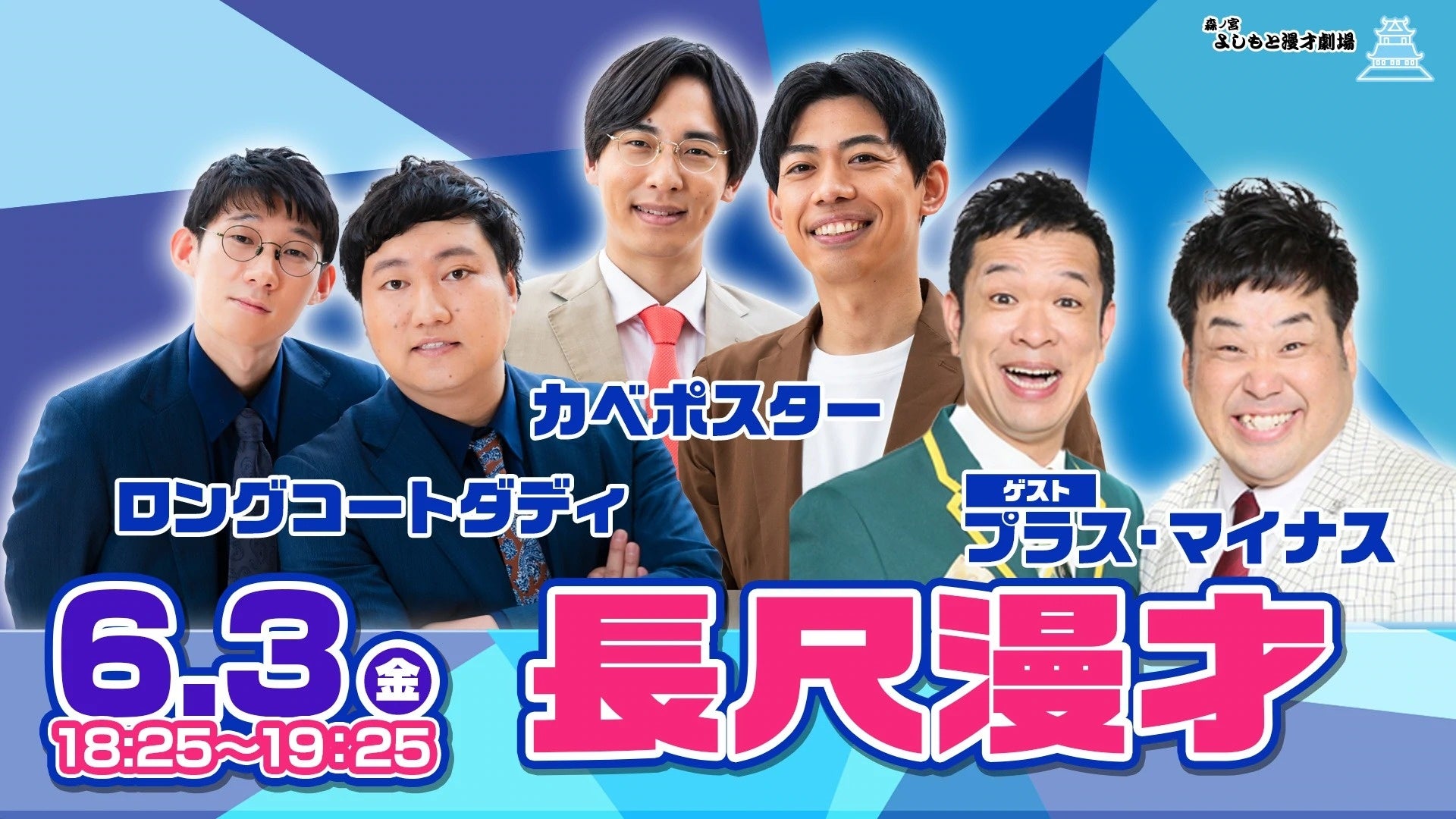 プラス・マイナス、ロングコートダディ、カベポスター3組の珠玉の漫才を満喫いただけます。