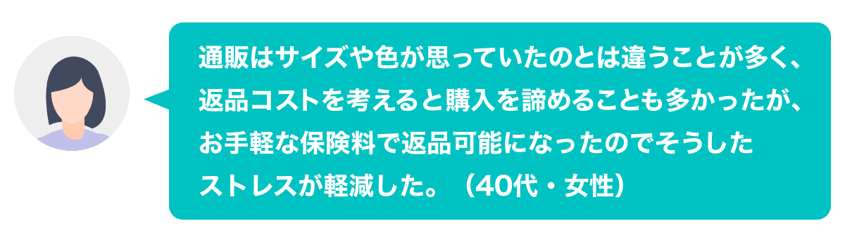 本保険は、LINEヤフー提供の「Yahoo!ショッピング」でのファッションアイテム(※1)の購入において、「サイズが合わない」「イメージと違う」といったユーザーの自己都合による返品時に発生する送料を補償する保険商品です。