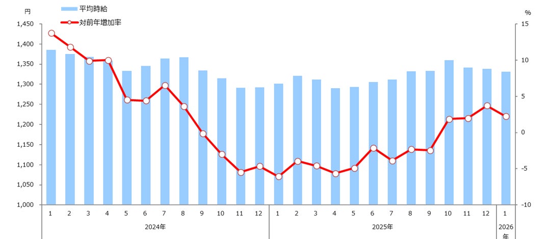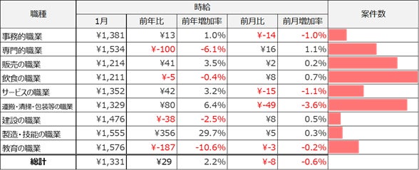 1.職種別平均時給(2026年1月)