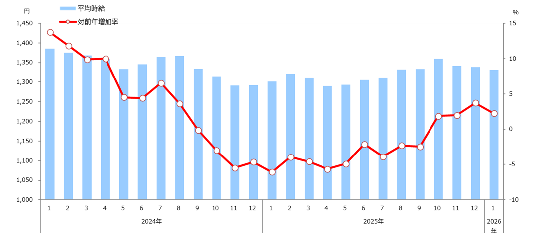 2026年1月度 アルバイト平均時給調査 全国の平均時給は1,331円