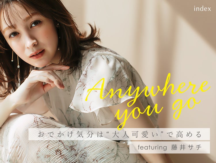 今回公開するWEBコンテンツでは、お出かけシーンでも大活躍してくれて一枚でサマになる、大人可愛いデザイントップスやワンピースなど、藤井サチさんの6つの着こなしでご紹介しております。