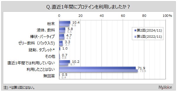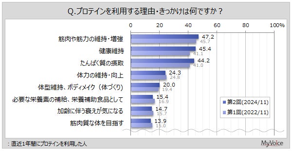 マイボイスコム株式会社(東京都千代田区、代表取締役社長:高井和久)は、2回目となる『プロテイン』に関するインターネット調査を2024年11月1日~7日に実施しました。