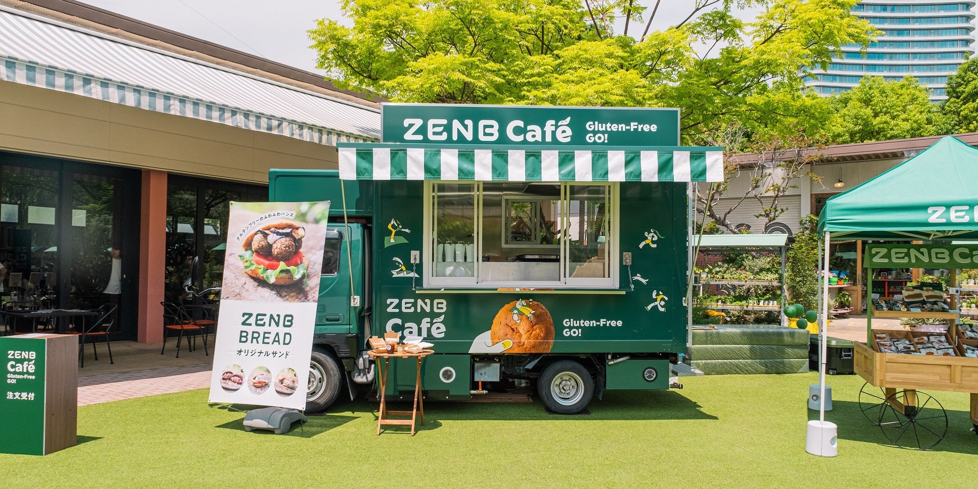 おいしくて、カラダと地球にやさしい「ZENB(ゼンブ)」から、グルテンフリーの豆粉パン「ZENB BREAD」のバーガーやサンドをキッチンカー“グルテンフリー号”でお届けします。ZENB商品の販売や、無料で遊べる「グルテン診断」もご用意。ぜひお楽しみください。