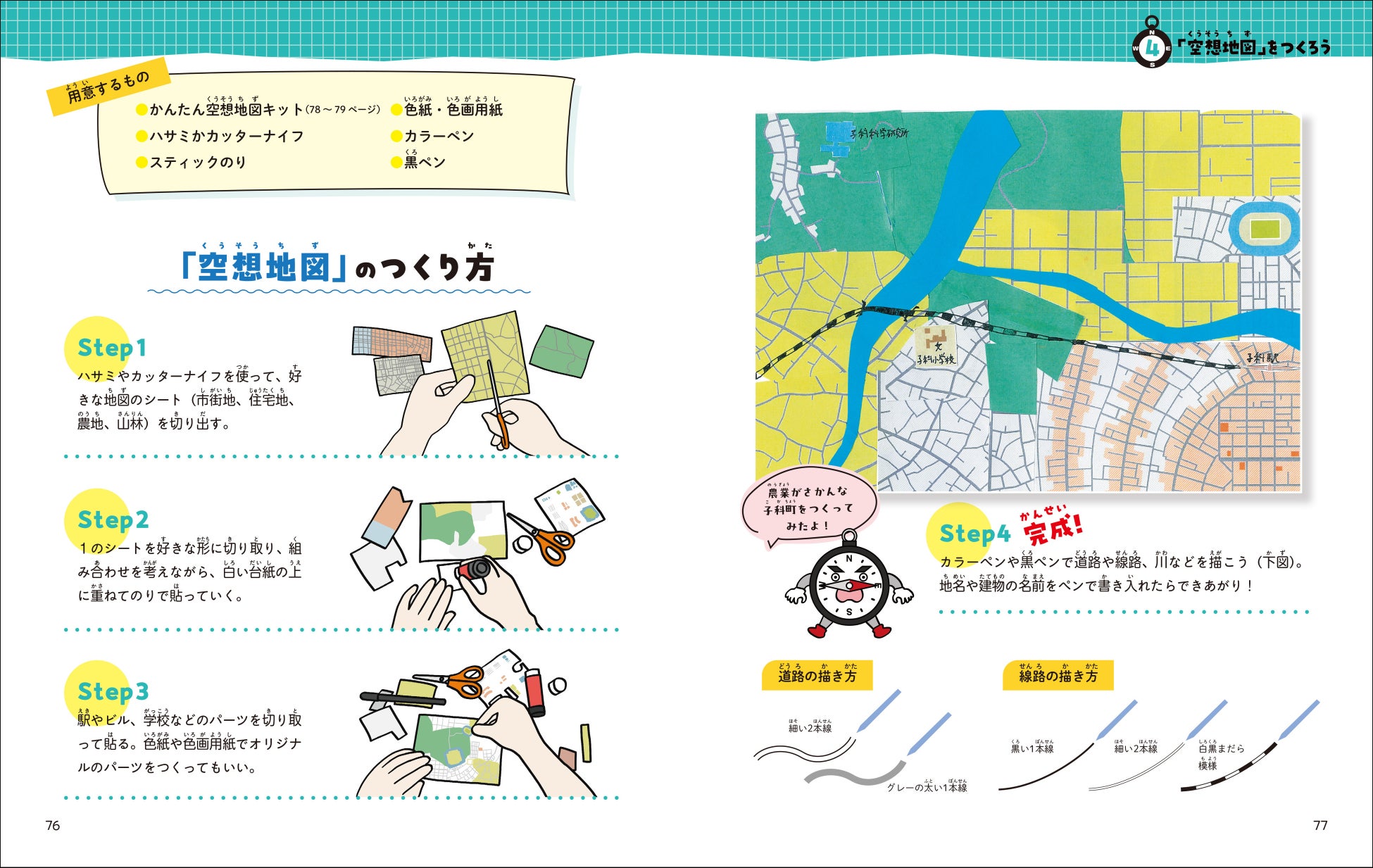 巻末には、自分の住んでみたい「空想地図」がつくれる型紙も収録しています。