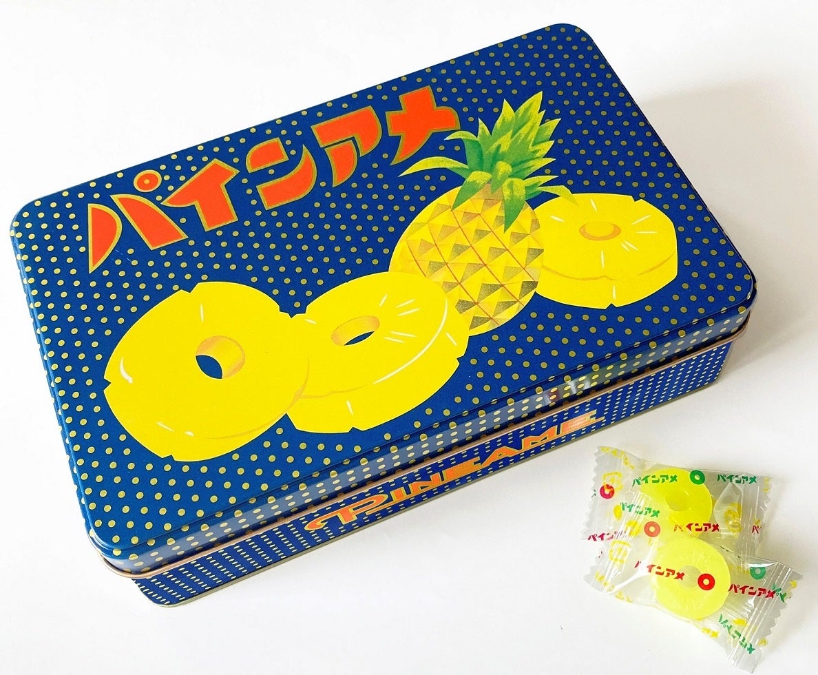 昭和23年に大阪で創業し、当時缶詰でも高級食品だったパイナップルを手軽に楽しんでほしいと、昭和26年に生まれた “パインアメ”。今年の3月には、ある方の祖母の遺品として出てきた、創業当初の「業平製菓」時代に作られたパインアメ缶が、約70年ぶりに「パイン」本社に里帰りしたという話がSNSで話題に。その創業当初のパインアメ缶を、今回のイベントのために特別に復刻いたします。