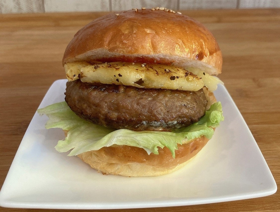 パイナップルの甘さとジューシーさがハンバーガーの肉やスパイスとの相性を生み出し、新鮮で爽やかな味わいを楽しむことができる、ハワイでも愛される組合せです。