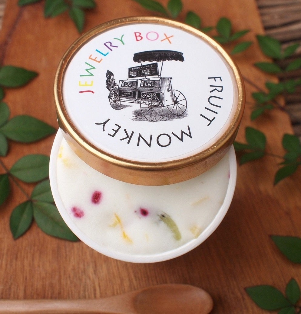 熊本の大自然で育った阿蘇のジャージー牛乳に、 パイナップルやマンゴー、キウイ、フランボワーズなどが入った贅沢なジェラート。新鮮なジャージー牛乳を使用しているので、濃厚なのに後味はスッキリしています。