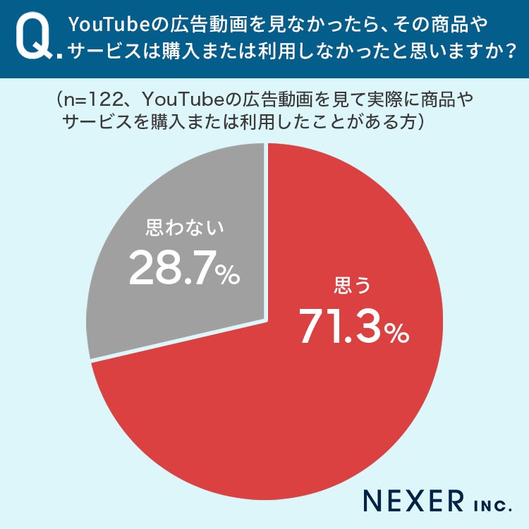 ■71.3%がYouTubeの広告動画を見なかったら、その商品やサービスは購入・利用しなかったと「思う」