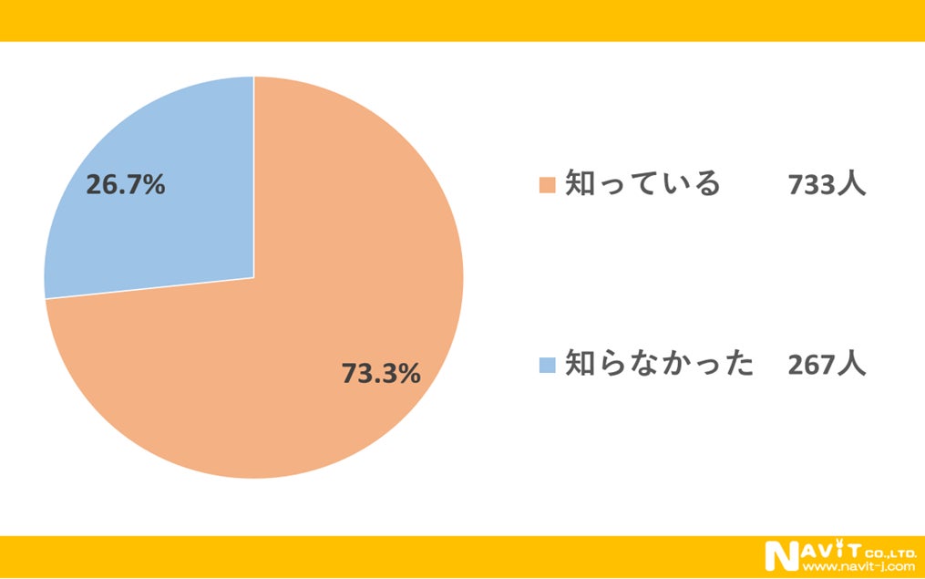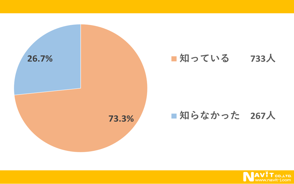 離婚後でも父母の両方が親権を持つ、共同親権を知っていますか?というアンケートに対して「知っている」と回答された人が73.3%で「知らなかった」と回答された人が26.7%という結果になりました。