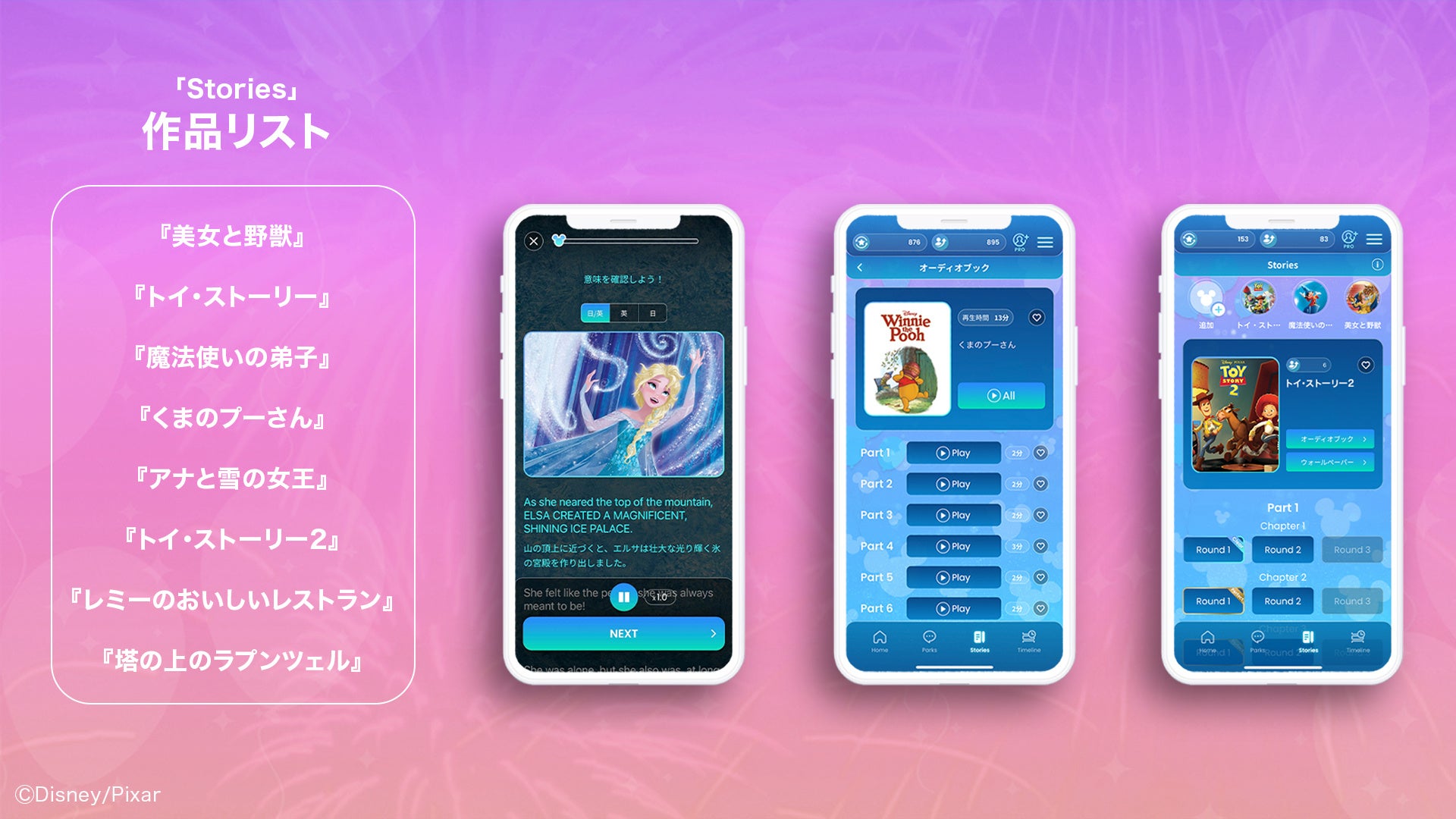 収録作品については、2023年1月31日のiOSプレリリース版配信以降、2月には『くまのプーさん』を追加し、3月には『アナと雪の女王』『トイ・ストーリー2』の2作品を追加いたしました。4月には、『レミーのおいしいレストラン』と『塔の上のラプンツェル』を追加予定です。