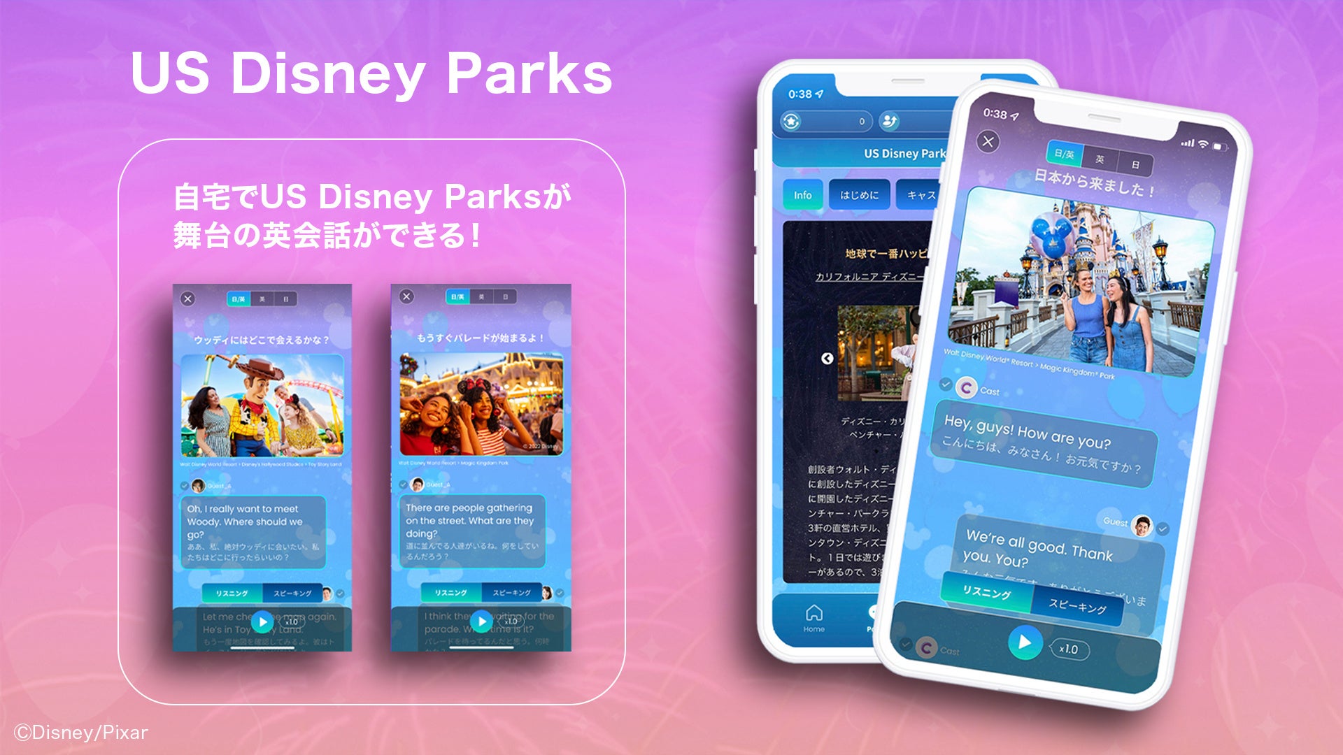 ②本場アメリカのディズニーパーク&リゾートが舞台のリアルな旅行英会話が学べる「US Disney Parks」