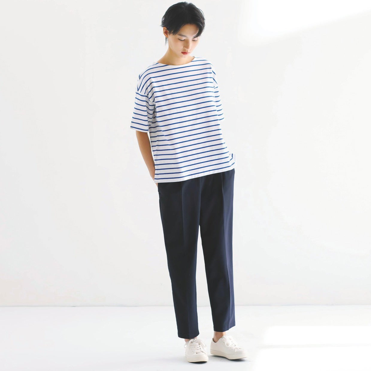 風を通すシリーズは、生地に極小の通気孔をつくることで通気性に優れ、湿気の多い季節に蒸れにくい素材を使用したアイテムを展開します。“風を通すストレッチサッカー”は、生地表面に凹凸があるサッカー織りでさらりとした肌触りです。ゆったりとしたシルエットでさらに風通しを良くしています。紳士アイテムでは、パンツにはセンタープレスを入れ、ジャケットとのセットアップも可能でオフィスカジュアルにも着用できます。婦人アイテムでは、テーパードパンツ、クロップドパンツに加え、今季はワンピースやサロペットなどのアイテムを展開いたします。