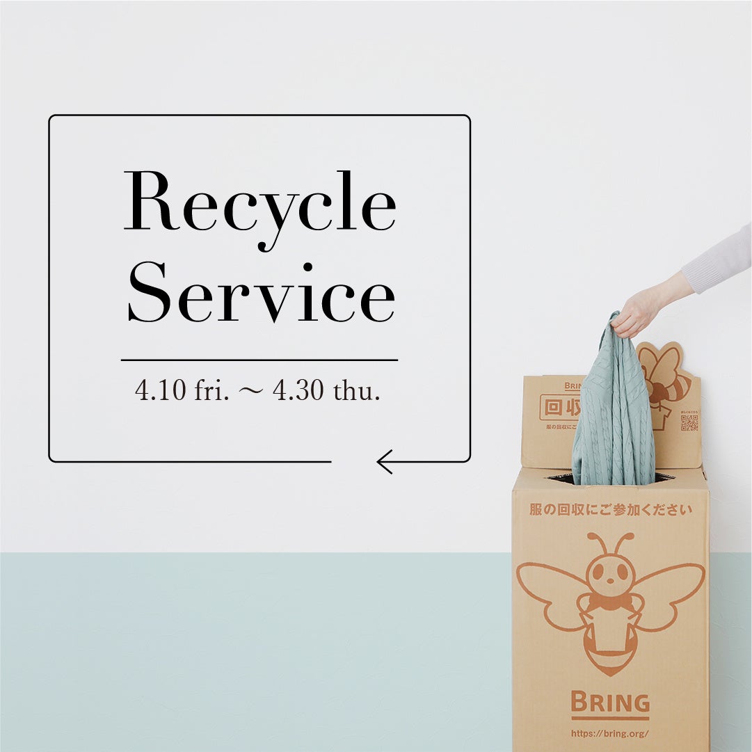 ご不要になった衣料品(最大3点まで)をお持ちいただくと、当日のお買物に限り合計金額より10%OFF※店舗により「NY.CLUB」10%分のポイント付与となります。※「NY.CLUB」会員様限定(当日のご入会を含む)です。※回収のみは承っておりません。※10%OFFは1点あたり3,300円(税込)以上の商品が対象です。※パーソナルオーダー品・セール品は対象外となります。※他の値引きサービスとの併用は致しかねます。※購入時点での保有ポイントのご利用は可能です。※アウトレット店、NYオンラインは未開催です。