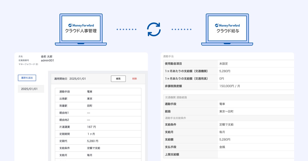 『マネーフォワード クラウド人事管理』『マネーフォワード クラウド給与』『マネーフォワード クラウド社会保険』の3プロダクトにおいて、「通勤手当」項目の連携を開始