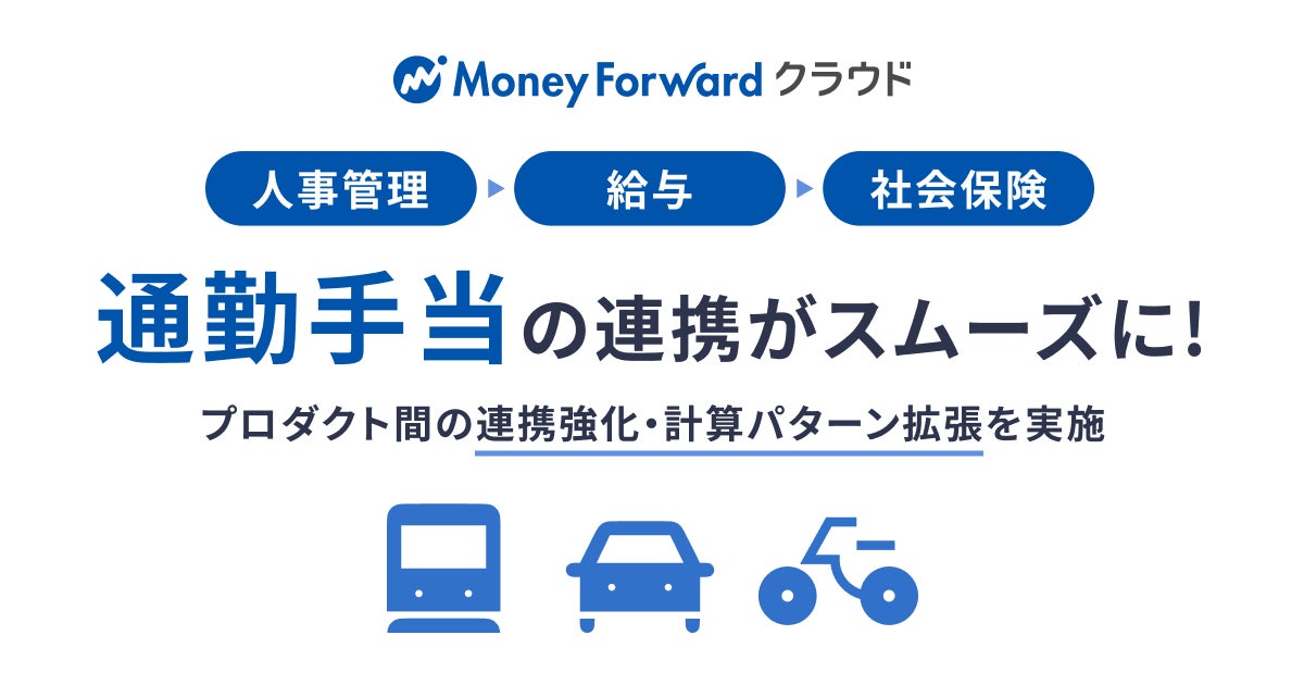 株式会社マネーフォワードは、『マネーフォワード クラウド人事管理』『マネーフォワード クラウド給与』『マネーフォワード クラウド社会保険』において、通勤手当の設定・計算・管理に関する連携を開始しました。これにより、従業員情報の登録から給与計算、保険料算定まで、通勤手当に関する情報がプロダクト間で自動的に連携でき、業務効率が大幅に向上します。