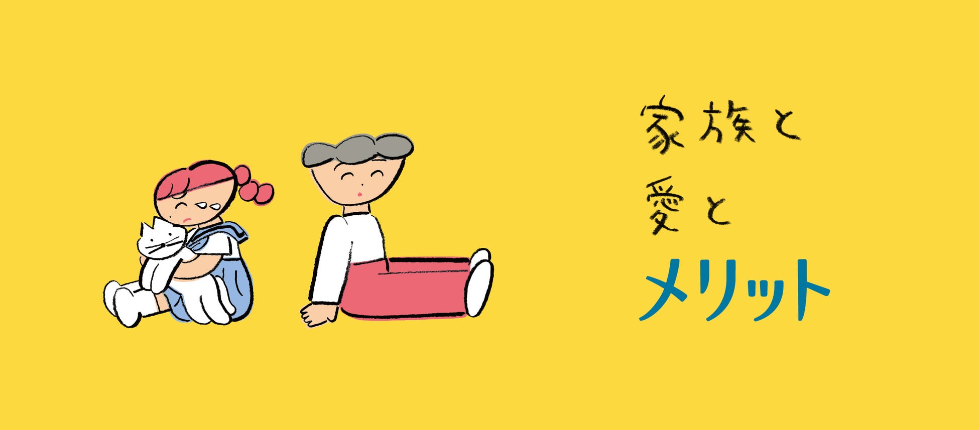 「家族と愛とメリット」第2弾では、落ち込んで家に帰ってきた娘と、娘を元気づけようと奮闘する父親をニシワキタダシさんの温かいイラストで描きました。ある日、家に帰るなり、靴や鞄を放り投げてオンオン泣きだす不機嫌な娘。外で何か思い通りにならないことがあった様子です。とても心配そうな父親は娘に近づいて慰めようとしますが、娘は父親が近づいてくるのも「嫌!」とばかりに拒否してしまいます。それでも落ち込む娘をどうにか元気づけたいと思う父親は、ペットの猫をそっと娘のそばに。猫を抱きしめてほんの少し元気になった娘の様子に、父親も一安心。「ほっといてね ほっとかないでね」という娘と父親のもどかしくも温かい距離感を表現したキャッチコピーとともに、「メリット」で髪を洗いながら、涙も洗い流して元気になっていく娘の様子を描いています。「メリット」がいつも家族の日常のそばにあり、“家族愛”を見つめていることを伝えています。 楽曲は、エレファントカシマシの「今宵の月のように」の冒頭部分をカバー制作。「いつの日か輝くだろう あふれる熱い涙」という歌詞と、涙を流しながらも前を向く娘の姿を重ね、様々な困難を乗り越えながら一歩一歩成長していく家族の姿を描きました。