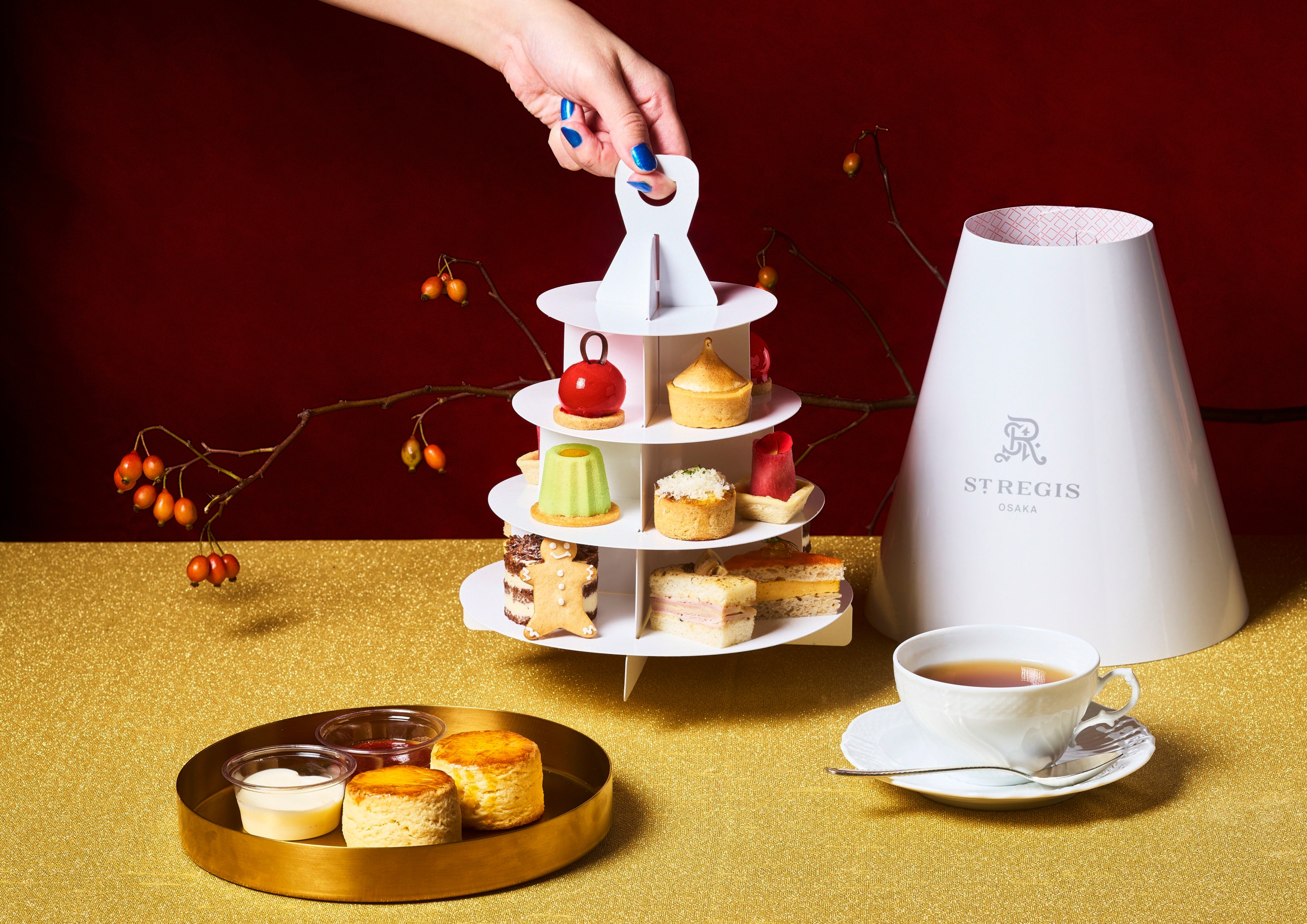 セントレジスの伝統をそのままご自宅へ3 段スタンドでお持ち帰りいただける、人気のテイクアウトアフタヌーンティー。セントレジスバーでご提供する「クリスマスアフタヌーンティー」をご用意します。