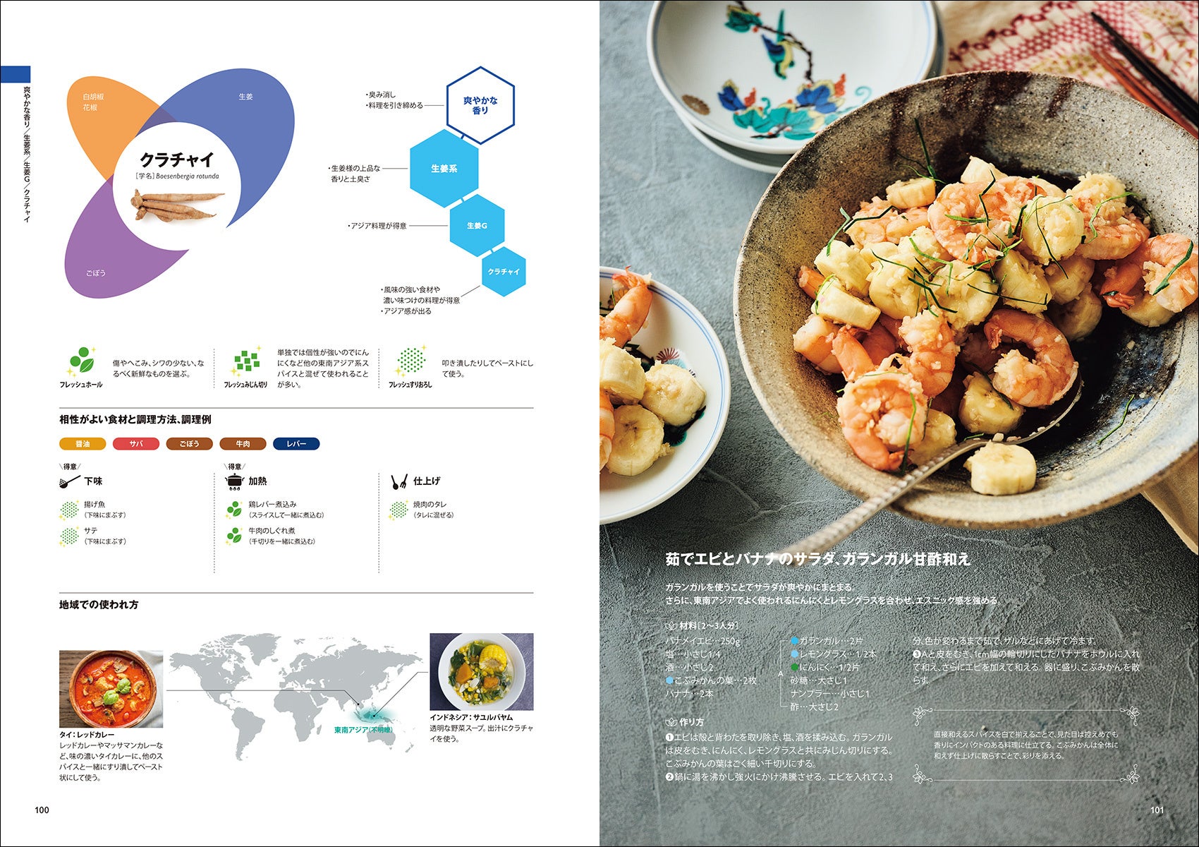 Chapter2では「約90種のスパイスが持つ特性と食材との組み合わせ方」をオリジナルレシピとともに学びます。