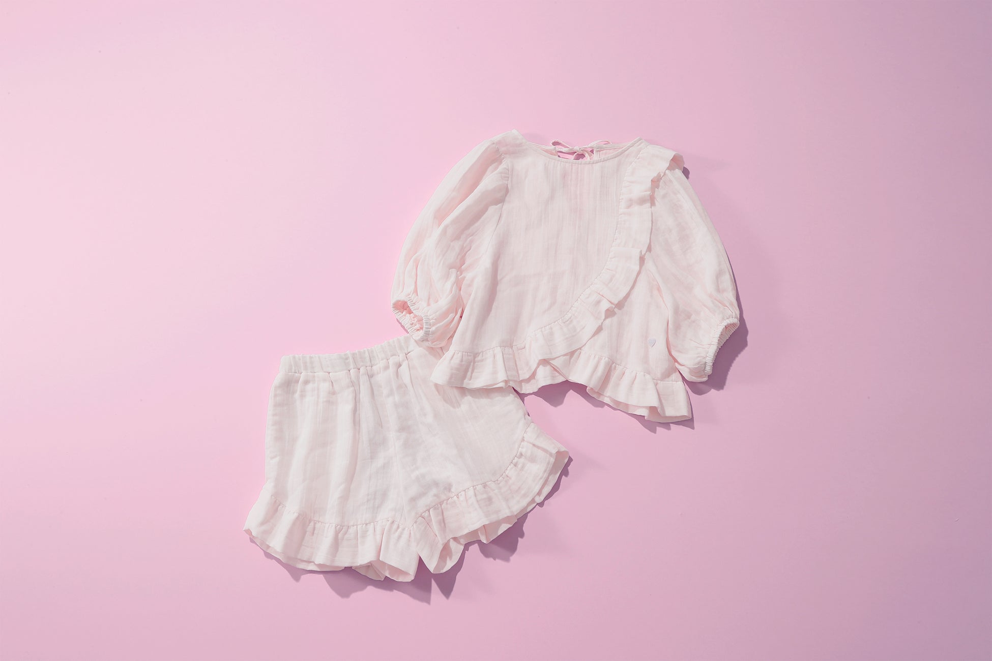 コットン100%で仕上げた、ふわふわガーゼのフリルシリーズ。