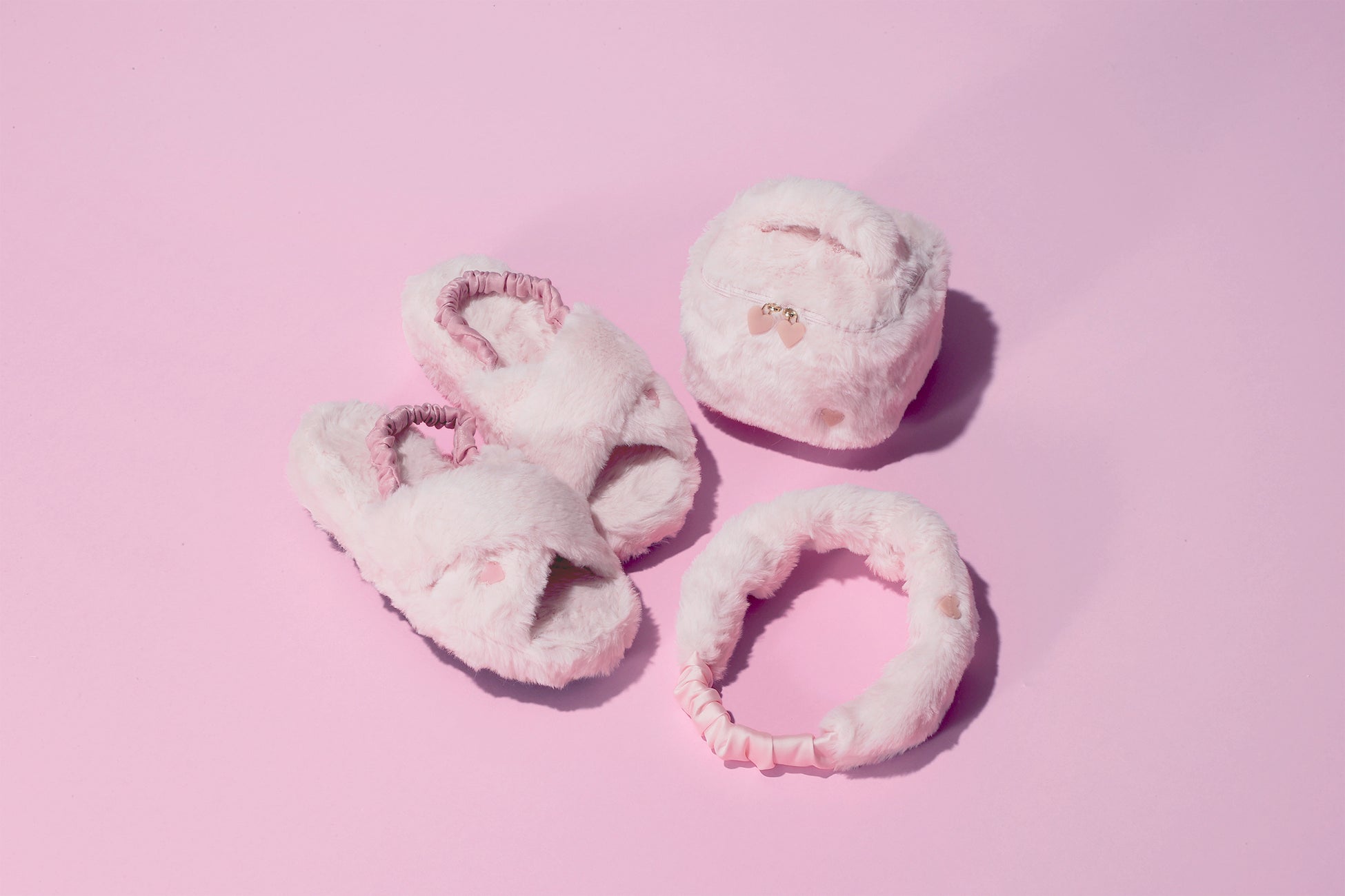 バニティポーチ、ルームシューズ、ヘアバンドの3型展開で