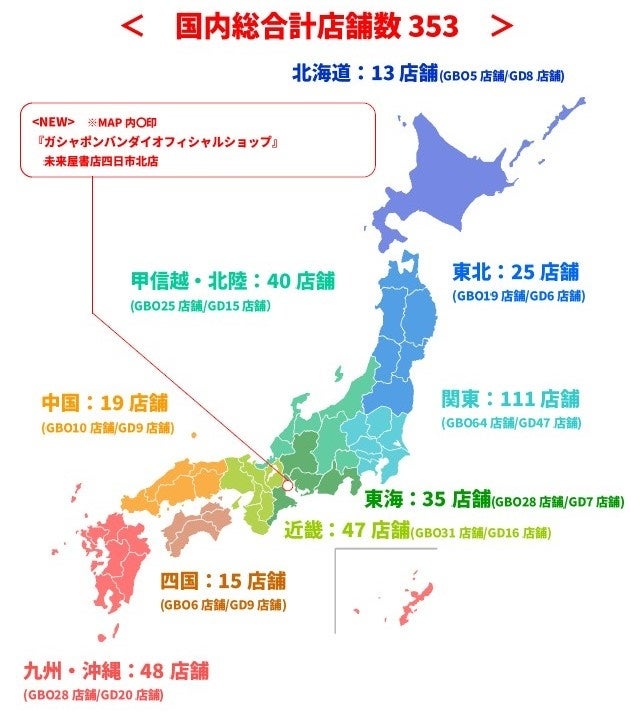 『ガシャポンバンダイオフィシャルショップ』未来屋書店四日市北店は、300面を一堂に展開するバンダイ公式の大型カプセルトイ専門店として、三重県四日市市に出店します。バンダイの新商品をすべて取りそろえ、ここでしか味わえない「ガシャポン体験」を提供することで、「ガシャポン」の新たな魅力を発信していきます。また書店ならではのガシャポン体験をお届けするべく、随時お客さまへキャンペーン情報の発信等を行ってまいります。