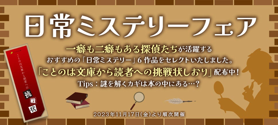 マイクロマガジン社(東京都中央区)は、ことのは文庫の「日常ミステリー」系人気作をピックアップした『日常ミステリーフェア』を2023年11月17日(金)より順次開催いたします。