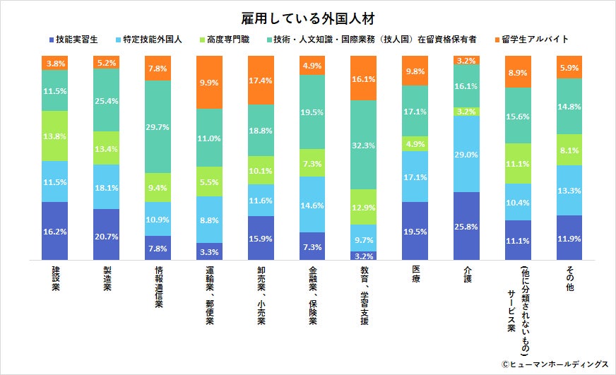 外国人材雇用が多い業種は「介護」「情報通信業」、高い日本語能力を求める|企業の人事・労務担当者1,000名に聞く【外国人材雇用に関する意識・実態調査】vol.2