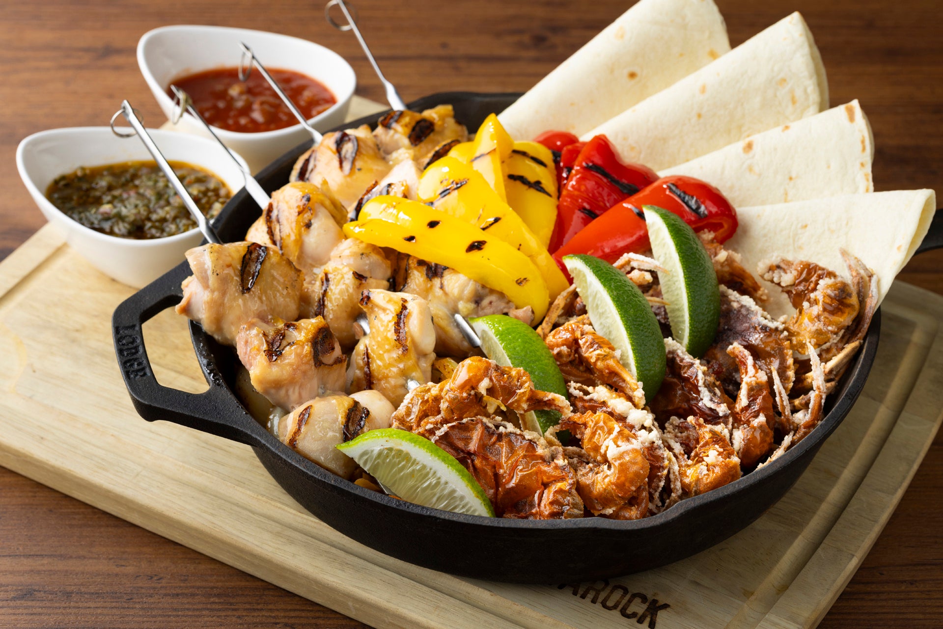 旬を迎えた海の幸と山の幸をふんだんに用いた夏のコースは、ひと皿ごとにきらめく夏を表現し、彩り豊かで賑やかなテーブルを演出します。前菜は夏みかんの香りとともにお楽しみいただける、オイルサーディンとタコのガリシア風をサラダ仕立てにしてご用意。前菜二品目は、ゴーヤの苦みがアクセントになった夏野菜と駿河湾産生しらすのアヒージョ。スープはガーリックをふんだんにきかせたアホ・ブランコをご提供いたします。魚料理は鱸に玄米を纏わせカツレツ仕立てにし、カリッとした食感も楽しんでいただける一皿に。塩レモンパスタとガーリックシュリンプが爽やかなテイストを演出してくれます。LAVAROCK(ラヴァロック)自慢の肉料理はパセリとガーリックを合わせたチミチュリソースとチャンキーサルサをトルティーヤに包んだ錦爽どりのエスペターダ。また、夏のカクテルとしてココナッツリキュールにマンゴーとパイナップルを加え、サンライズをイメージしたスムージースタイルの「Yellow Eruption」、テキーラをベースにライムの酸味にホワイトミントの清涼感を加え、スイカシロップでサンセットをイメージした「Ruby Amor」の2品をご用意しました。